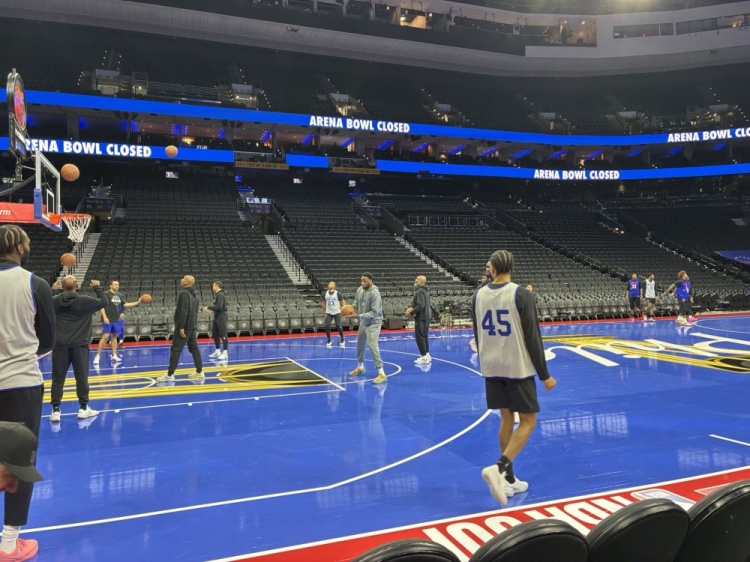 How does the 76ers NBA Cup home floor look? The players are already practicing on the NBA Cup court!