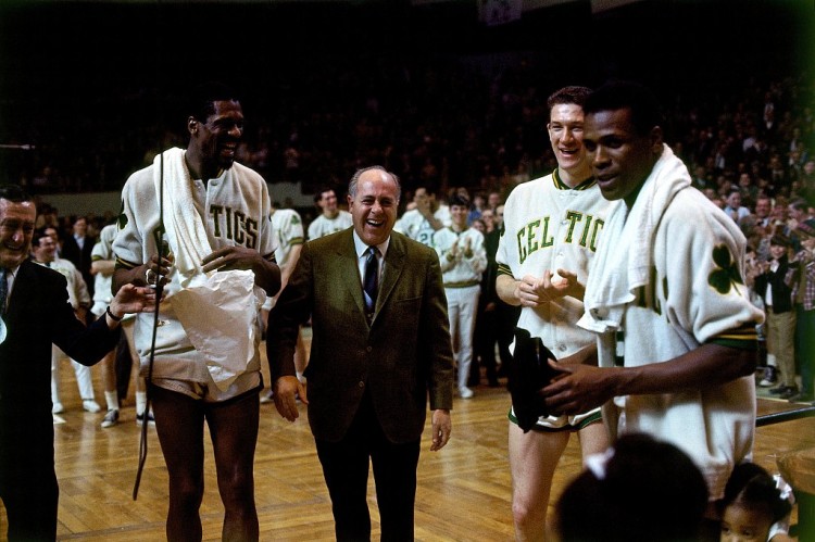 Bill Russell and Bob Cousy led the Celtics to start with a 14-game winning streak (ended by the 76ers). In the end, they won 49 games and lost 23 in the regular season, and lost to the St. Louis Hawks 2-4 in the finals.