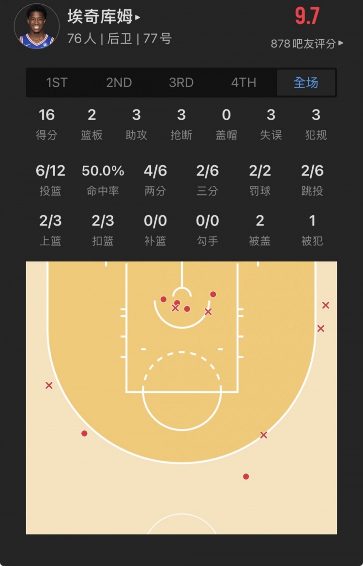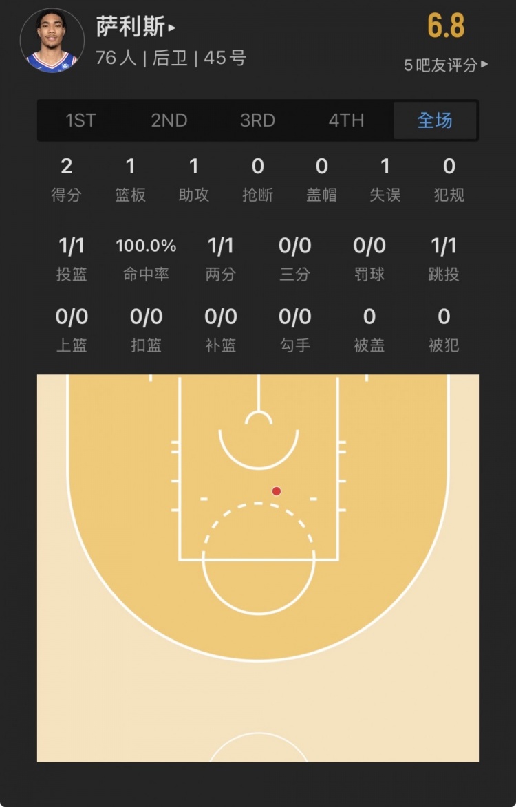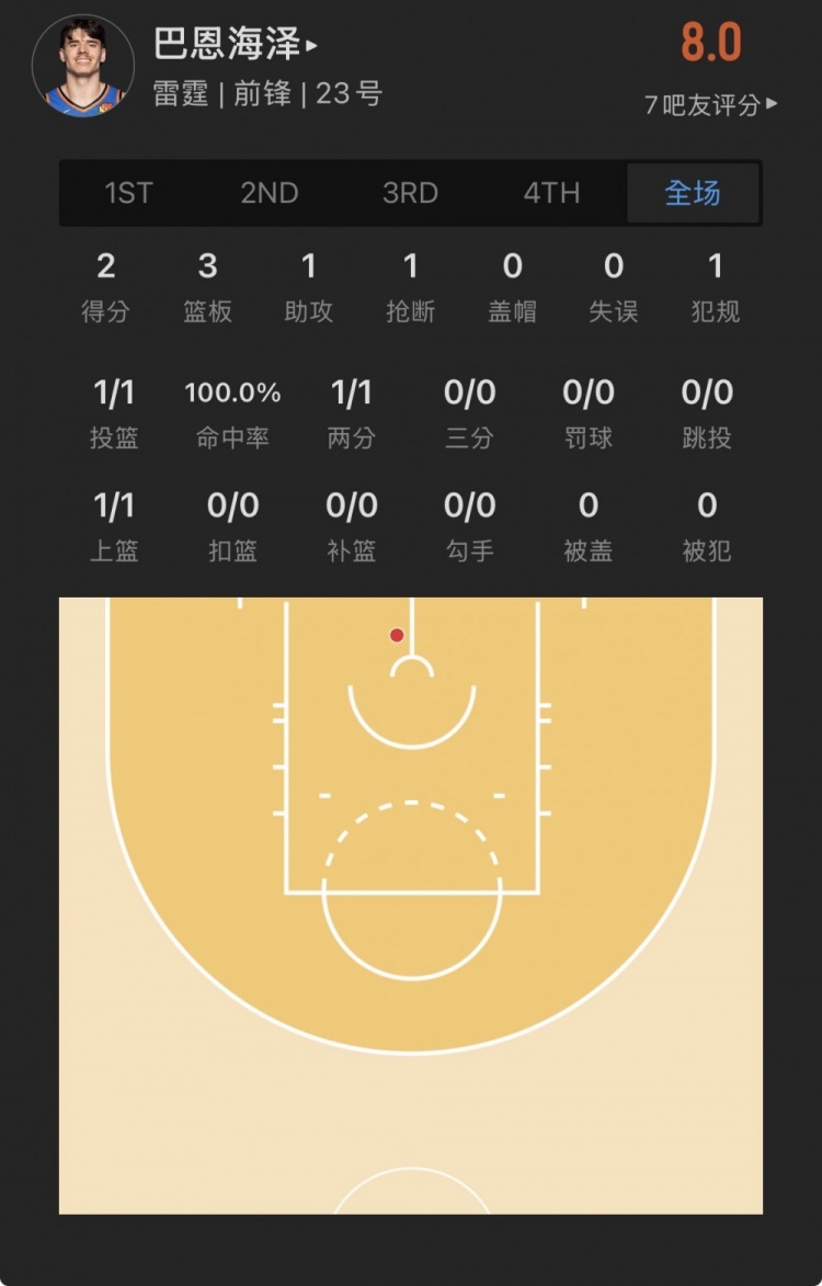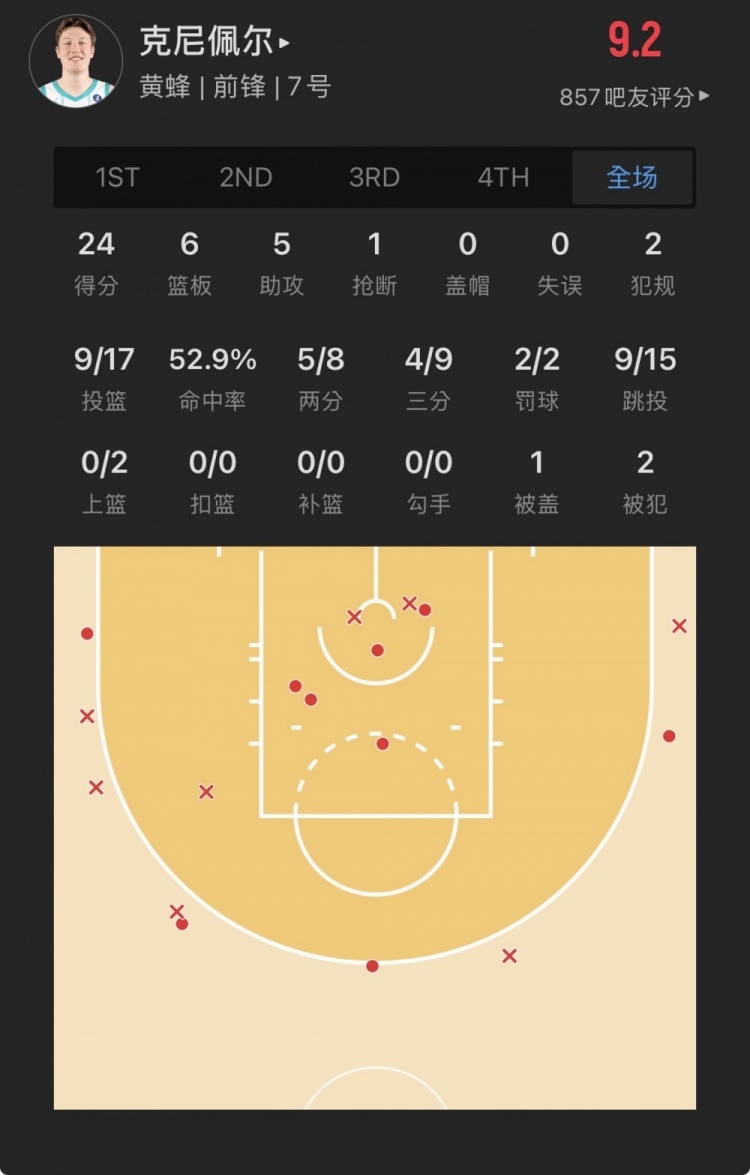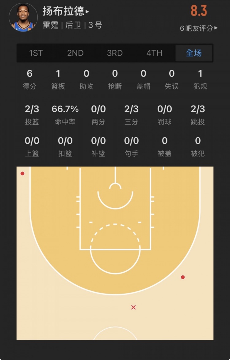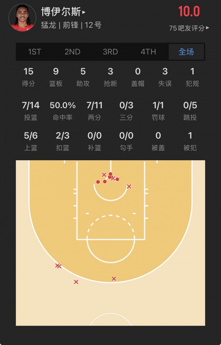 [Rookie] The No. 4 pick hit a new high with 24 points. Raptors Dream Chaser scored 15 points, 9 rebounds, 5 assists and 3 steals. Second pick Harper retired due to injury.