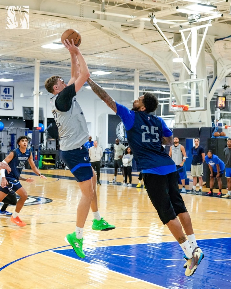 Today, the Mavericks officially posted the team training photos. Among them, Flag and Anthony Davis were fiercely aligned.