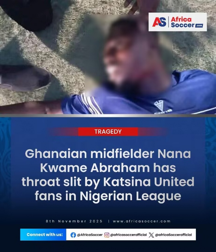 According to foreign media Africa soccer reports, a shocking incident occurred during the Nigeria Premier League match between Katsina United and Balau on Saturday. Ghanaian midfielder Nana Kwame Abraham had his throat cut by the home team's fans after participating in the equalizer goal.