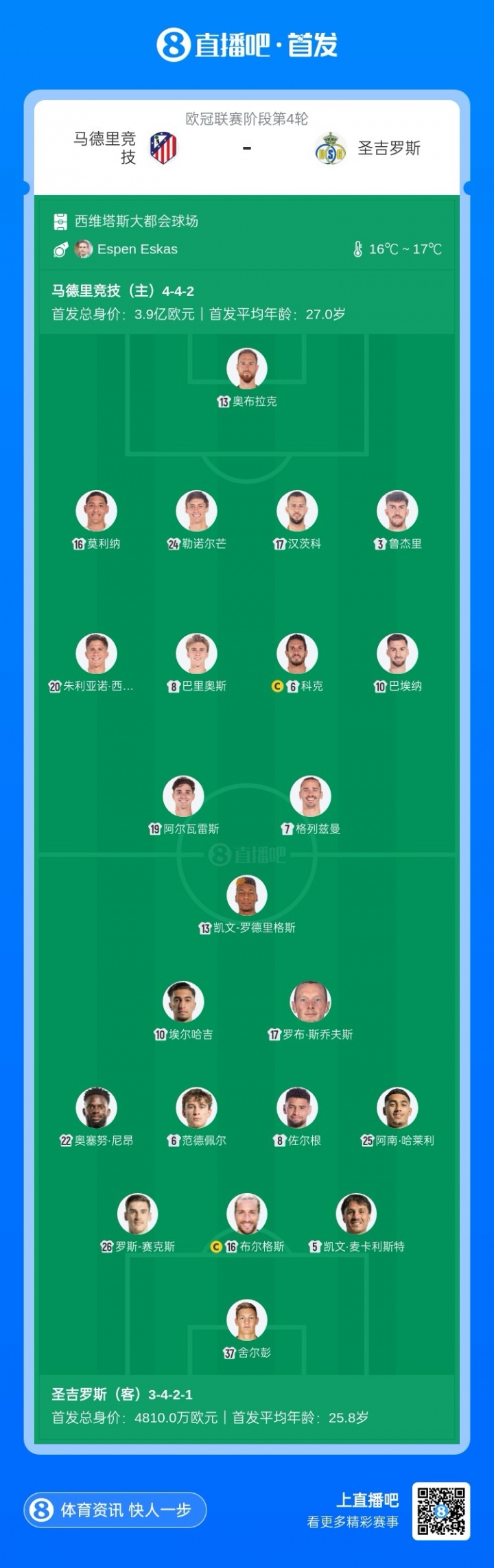 In the first 3 rounds of the Champions League, Atletico Madrid had 1 win and 2 losses, and suffered a 0-4 defeat at Arsenal in the previous round; San Giros had 1 win and 1 loss, and suffered a 0-4 defeat at Inter Milan in the previous round!