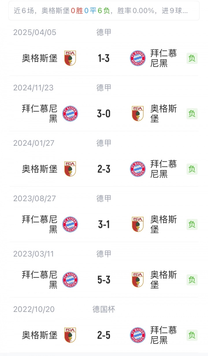 The two teams have faced each other in the last 6 matches, and Bayern won all the wins.