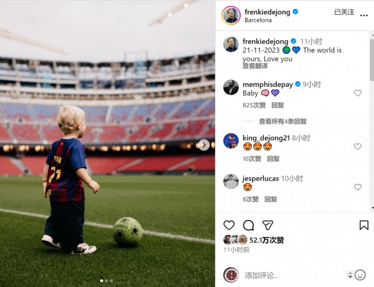 De Jong’s son Miles celebrated his 2nd birthday. De Jong’s social media posted a photo of Miles at Camp Nou with the text: “On November 21, 2023, this world belongs to you, I love you.”