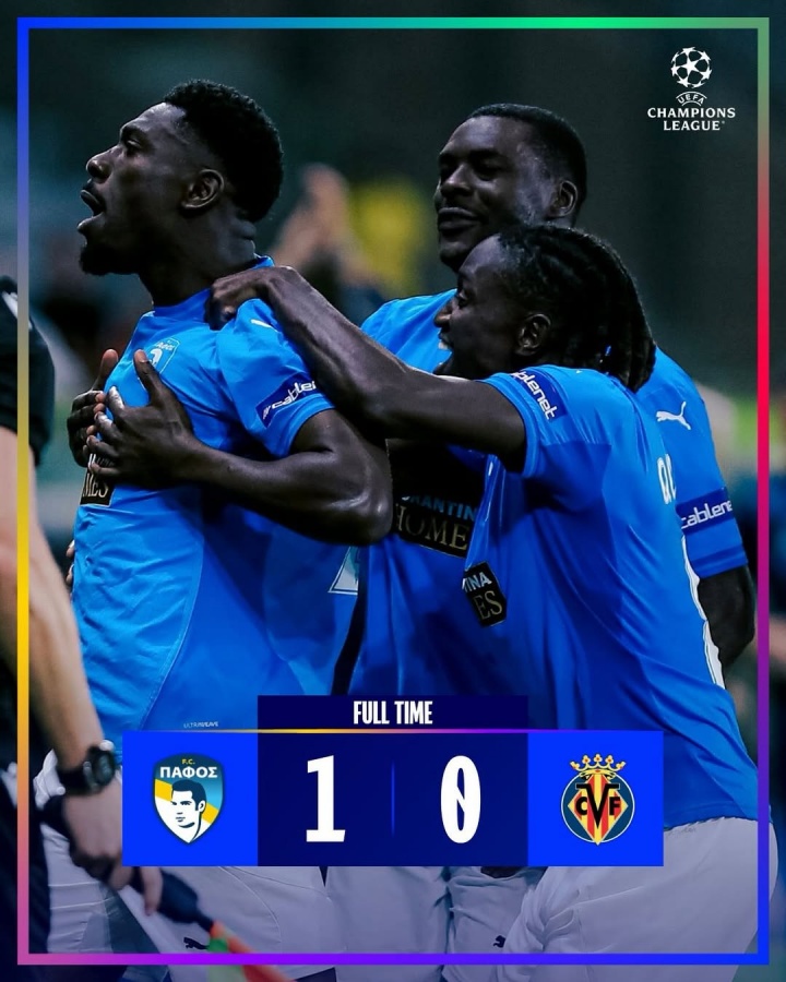 In the fourth round of the Champions League, the Cypriot team Paphos defeated Villarreal 1-0 at home. This new Champions League team achieved its first victory in the Champions League in team history.