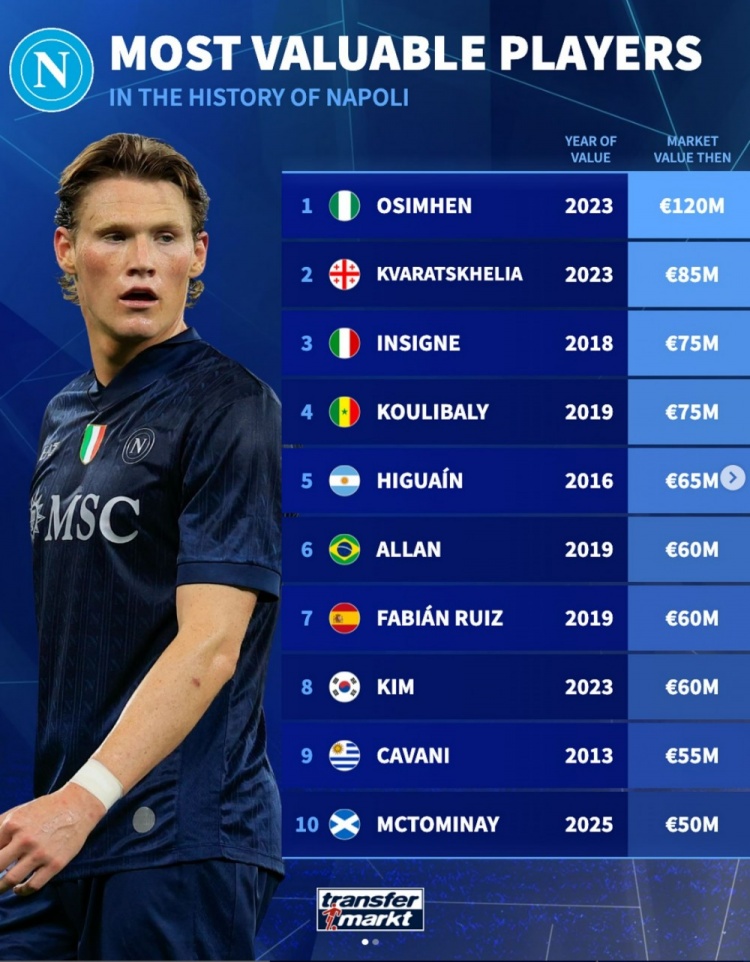 Inter Milan vs. Napoli team history worth list: Lautaro and Osimhen top the list