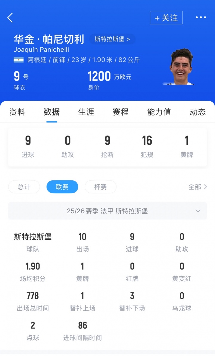 The 23-year-old Panicelli has a distinctive style and various ways of scoring goals. With a height of 1.9 meters, he can not only take advantage of the aerial challenge, but also complete the offensive connection with his back to the goal. Now he has become the focus of the transfer market.