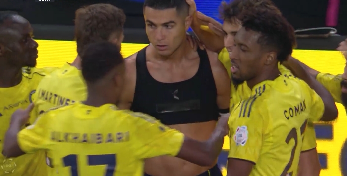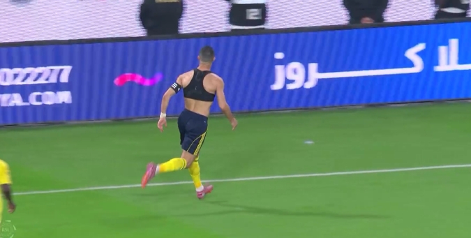 In the 59th minute of Saudi United Victory vs. Al-Hasa Conquer, Cristiano Ronaldo's penalty kick was saved, and then in the 60th minute, he scored with a long-range shot. Victory 2-1 led Al-Hasa Conquer again!