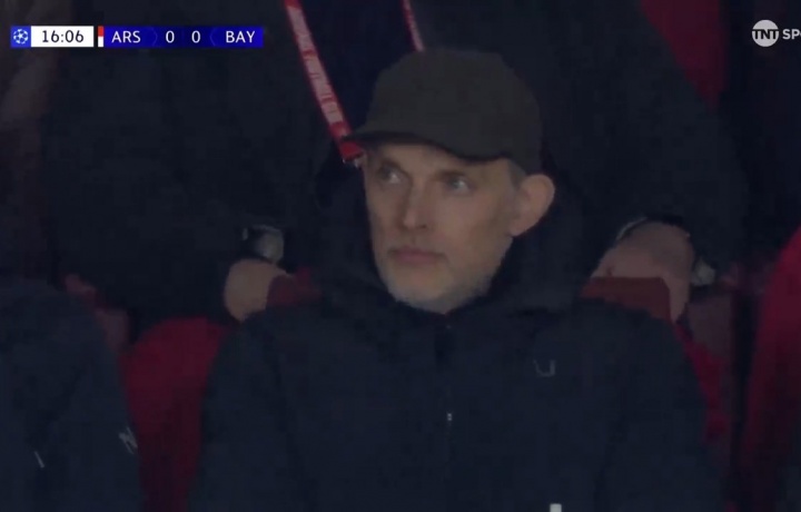 In the 17th minute of Arsenal vs Bayern, the broadcast camera was shown to the stands, and England coach Tuchel was present.