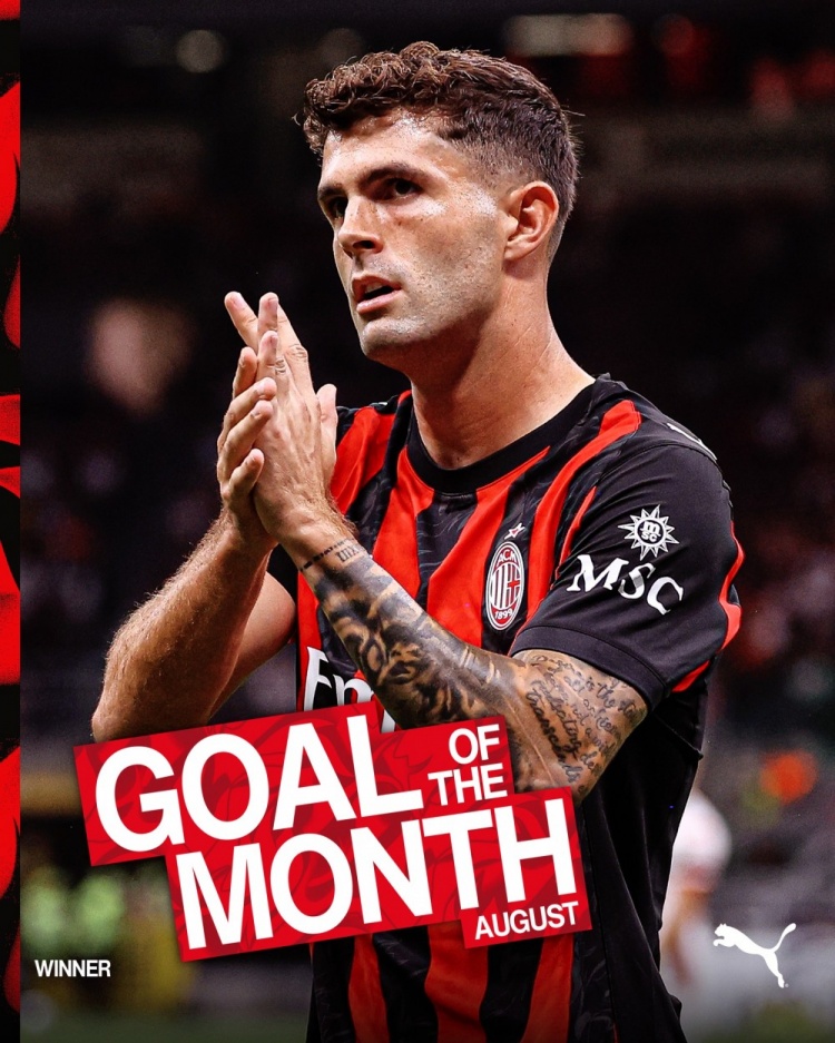 Milan officially announced that Pulisic scored against Bari as the best goal in the team in August.
