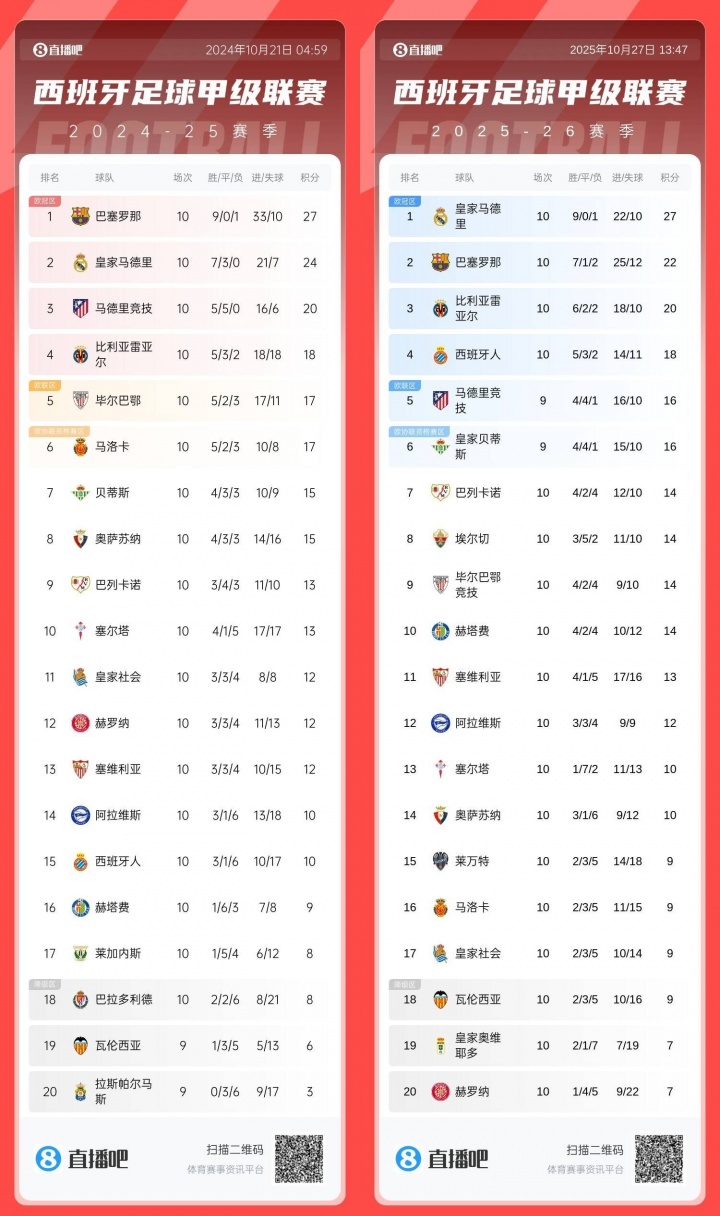 In addition, the 11th round of La Liga last year happened to be the game where Barcelona defeated Real Madrid 4-0. After the 11th round, Barcelona led by 6 points.