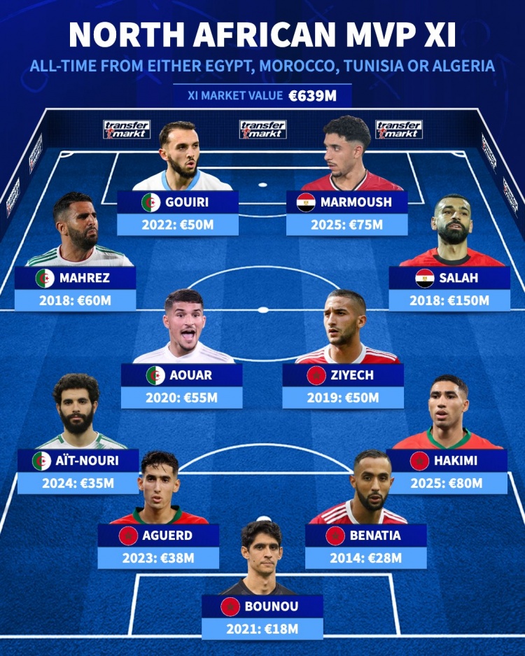 The most valuable lineup in North African history: Salah leads the way, with Achraf and Malmouche included