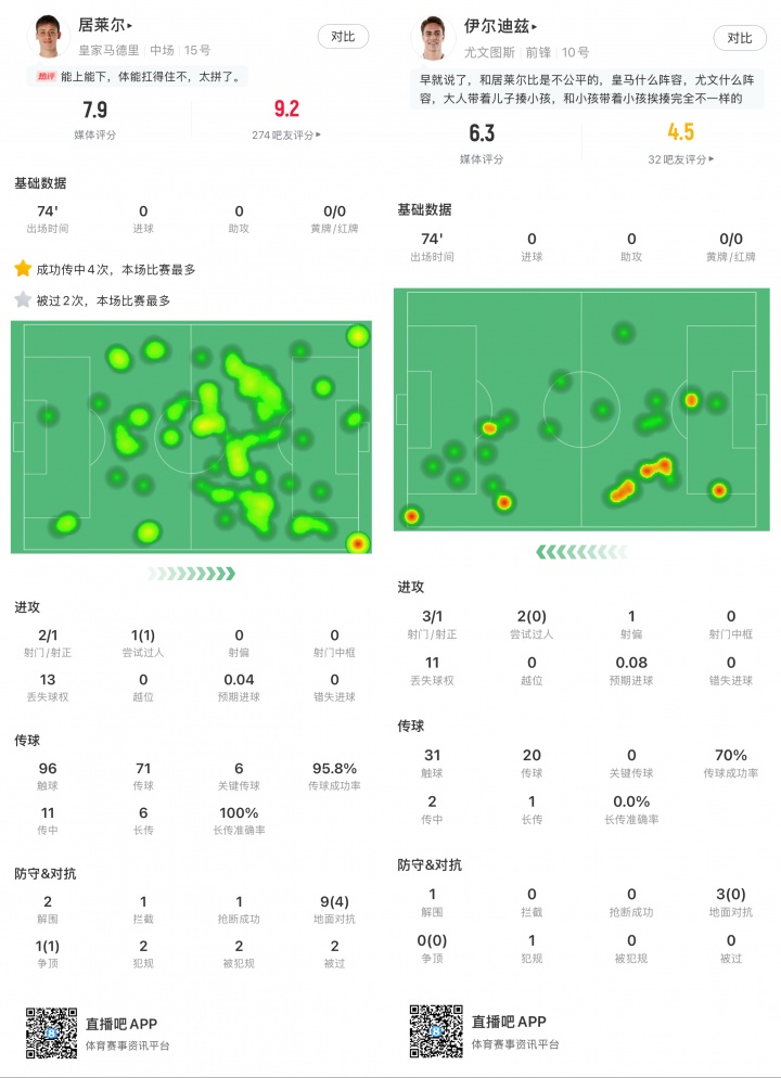 Guler is worth 60 million euros at the age of 20. He scored 7.9 points in this game and was officially selected as the best player of the game by the Champions League. He shot 2 times and 1 time on target, 1 successful dribble attempt, lost the ball 13 times, touched the ball 96 times, and 71 times. Passing, the passing success rate was 95.8%, 6 key passes, 6 long passes were all successful, 2 clearances, 1 interception, 1 successful steal, 4 of 9 ground confrontations were successful, 1 successful aerial challenge, 2 fouls, 2 fouls, and 2 passes.