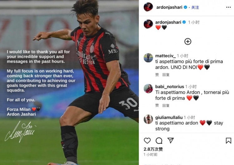 AC Milan officially announced today that the team's new player Ashari collided with S-Jimmenez during training and suffered a composite right fibula fracture and will undergo a conservative treatment plan. According to reports from Dimazio and others, players will face long-term injuries.